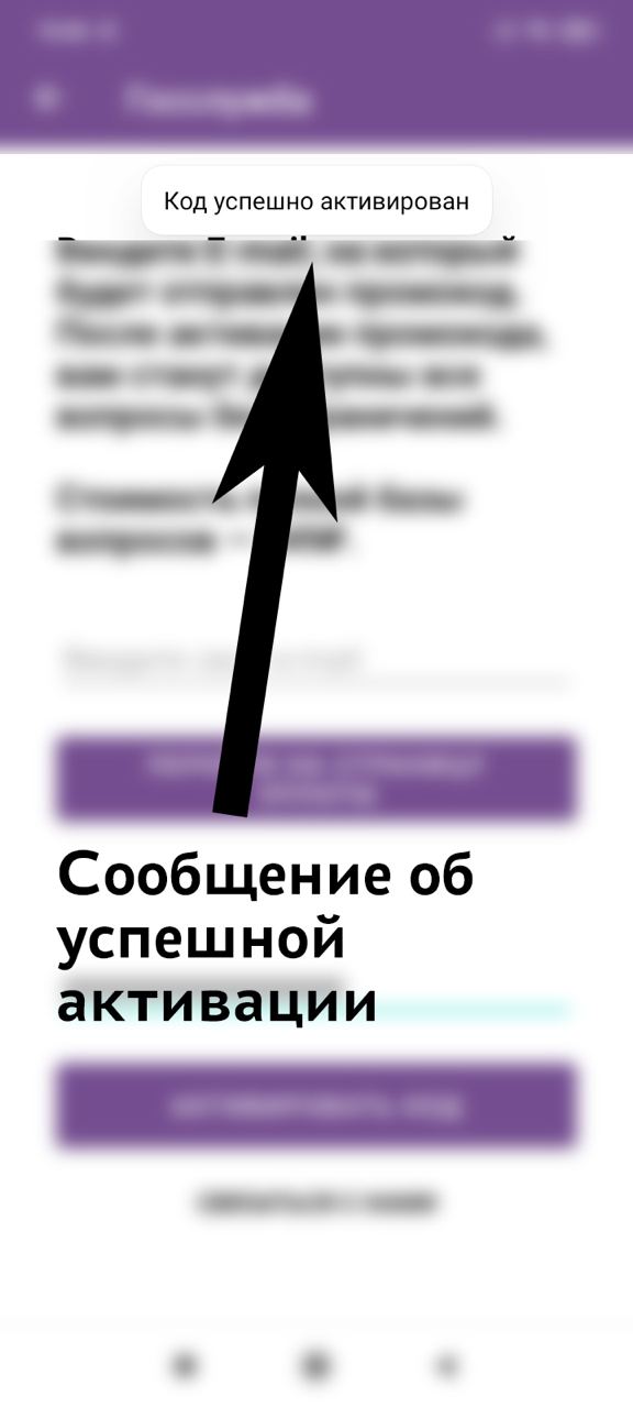 Инструкция активации приобретённого кода в приложении Android